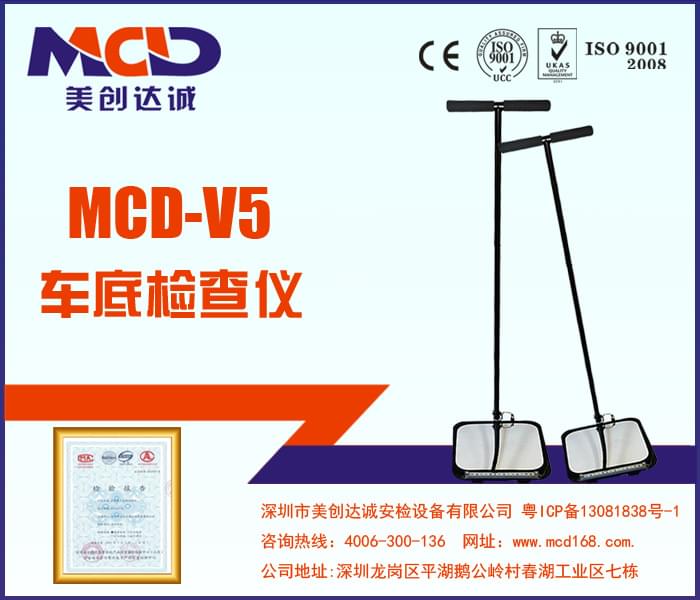 MCD-V5是美創(chuàng)達誠安檢設備有限公司推出的一款非常受歡迎的車底安全檢查鏡,30CM超大方形凸面鏡,大功率高亮白光LED燈,可充電電池。經(jīng)濟便攜,簡單明了,帶三個支撐活動的輪子,推動輕便,桿子活動范圍大,適用于不同角度的空間,是一款被廣泛應用于檢查車子、桌子、凳子等底部是否有異常的安檢工具。