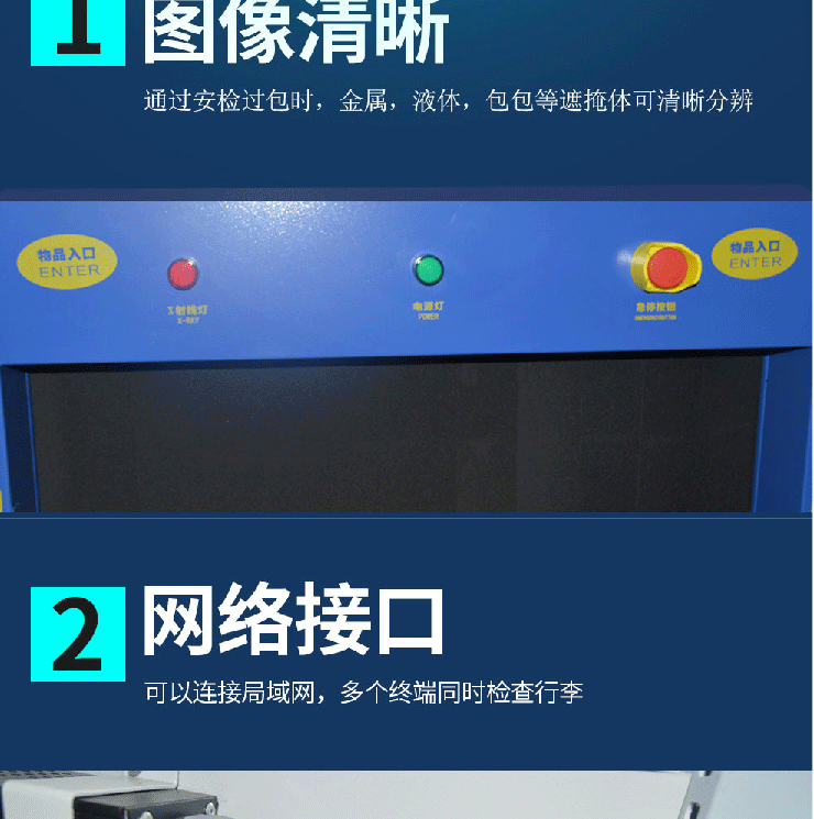 1、網(wǎng)絡接口 : 可以連接局域網(wǎng),多個終端同時檢查行李; 2、射線更安全 : 射線發(fā)射自動控制,避免誤發(fā)射