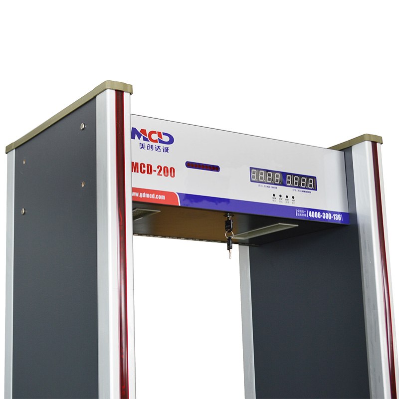 以MCD-200型安檢門為例,它是一款經(jīng)濟(jì)實(shí)用的金屬安檢門。該安檢門是一種結(jié)構(gòu)上做成人可通過(guò)的門狀,門的兩邊柱子上安裝了報(bào)警高亮度LED指示燈,采用鋁合金做立柱燈條,報(bào)警的位置直接的顯示出來(lái)、美觀大方。門中建立有電磁場(chǎng),當(dāng)人體攜帶金屬物品通過(guò)時(shí)產(chǎn)生報(bào)警的裝置,能準(zhǔn)確探測(cè)到人身上或手提包箱中的隱藏金屬或含有金屬的物體,如各種管制刀具、武器、金屬制品、電子產(chǎn)品及其它含有金屬的物品等,采用微處理器數(shù)碼控制技術(shù)、抗干擾能力強(qiáng),可自動(dòng)統(tǒng)計(jì)通過(guò)人數(shù)和報(bào)警次數(shù)。>>MCD-200型安檢門http://m.gjgck.com/mcd20/mcd200dzcw.html