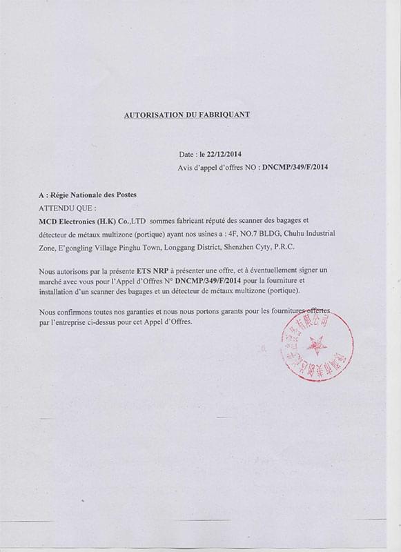 The authorized period: 1 years(2014.12.12-2015.12.11)