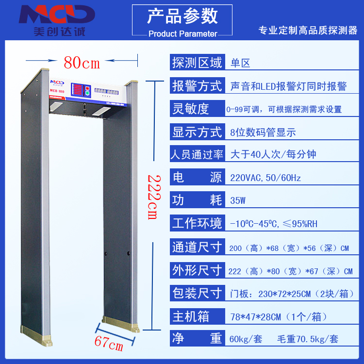 《美創(chuàng)達誠》12年專注安檢產品,專業(yè)生產安檢門,手持金屬探測器,地下金屬探測器,食品金屬檢測儀,車底檢查鏡,行李包裹安檢機等.產品通過ISO9001質量體系認證及CE,FCC、SONCAP、RoHS等多項國際質量認證,所以凡在本廠購買的產品都享有1年保修服務,秉著顧客第一,服務至上的理念,致力打造行業(yè)第一品牌。