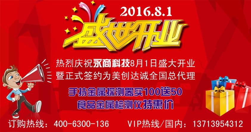 深圳市永商科技有限公司正式掛牌運營,同日簽約成美創(chuàng)達誠總代理,營業(yè)期間,凡在本公司訂購手持金屬探測器100支,送50支。