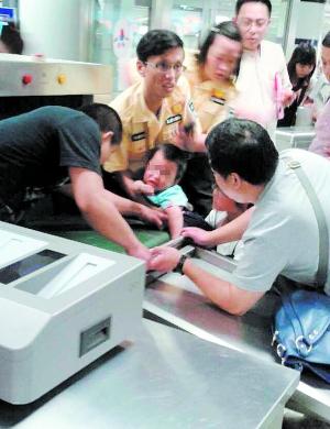 乘坐地鐵國安檢時(shí)常有的事,而在這兒的過程中常??吹胶⒆油嫠S檬钟|碰安檢機(jī),而很多家長卻沒注意。曾有人對這種情況進(jìn)行實(shí)驗(yàn)。